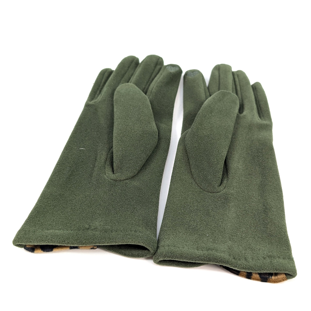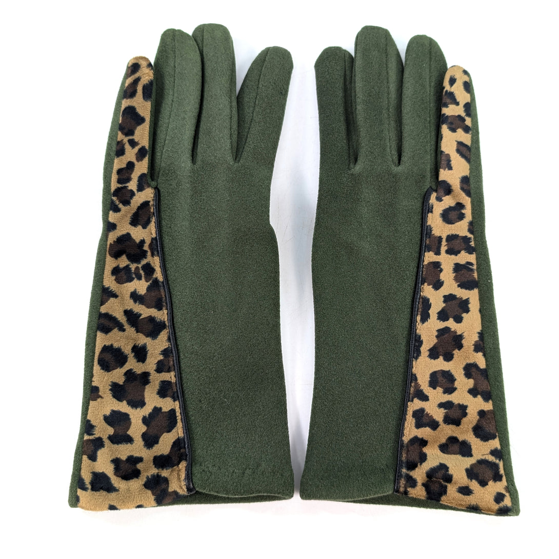 Animal Print Brushstroke Gloves Dark Green | Ladies Gloves