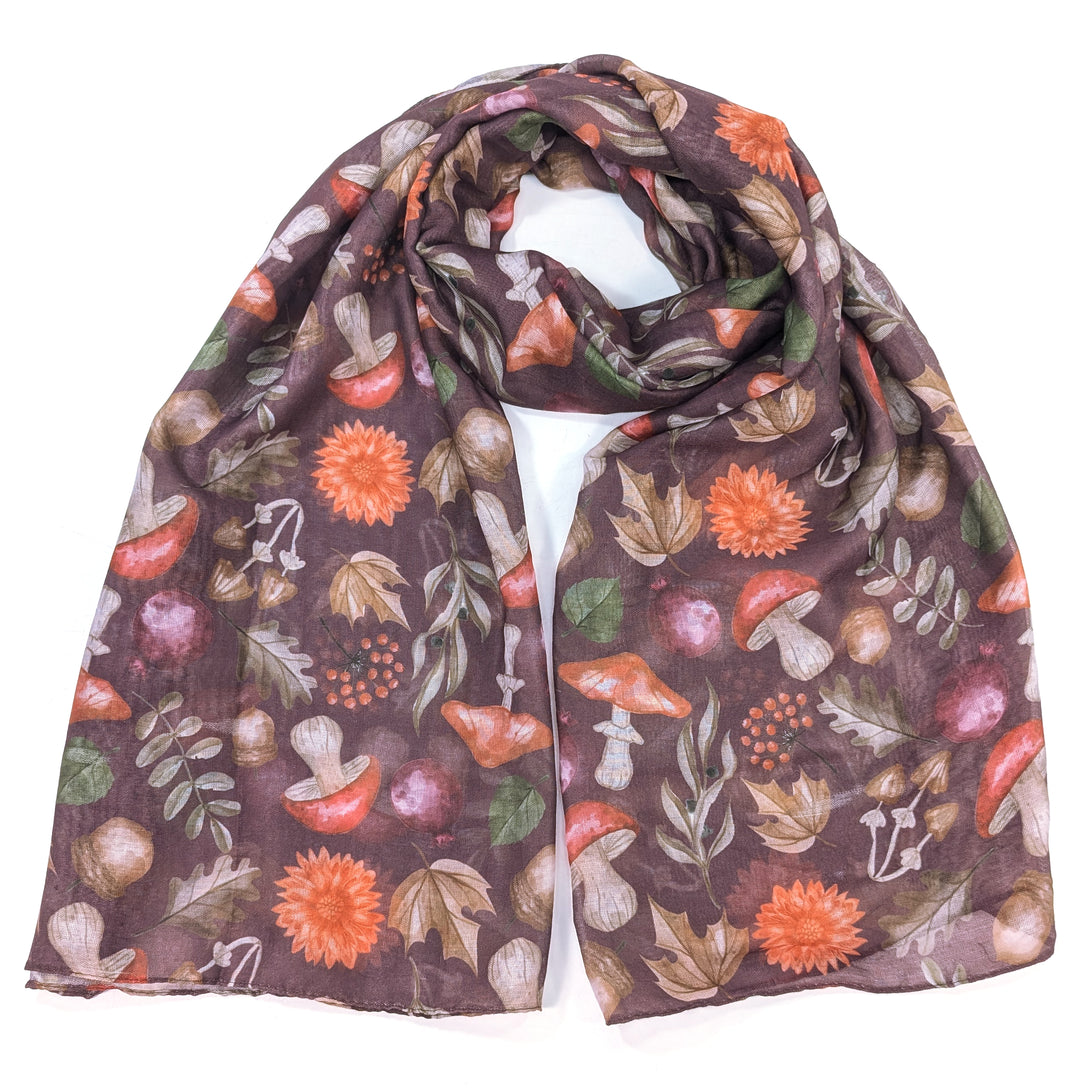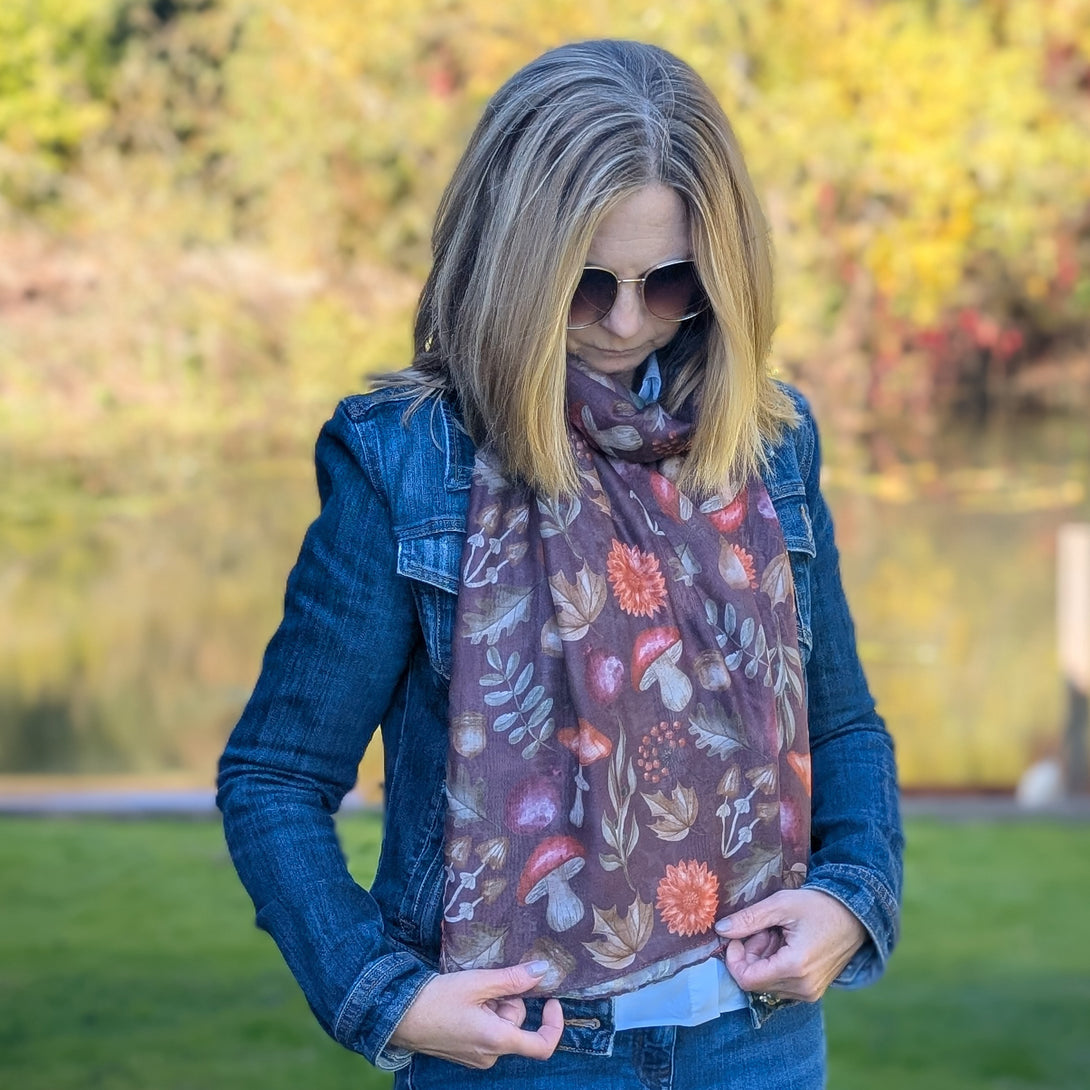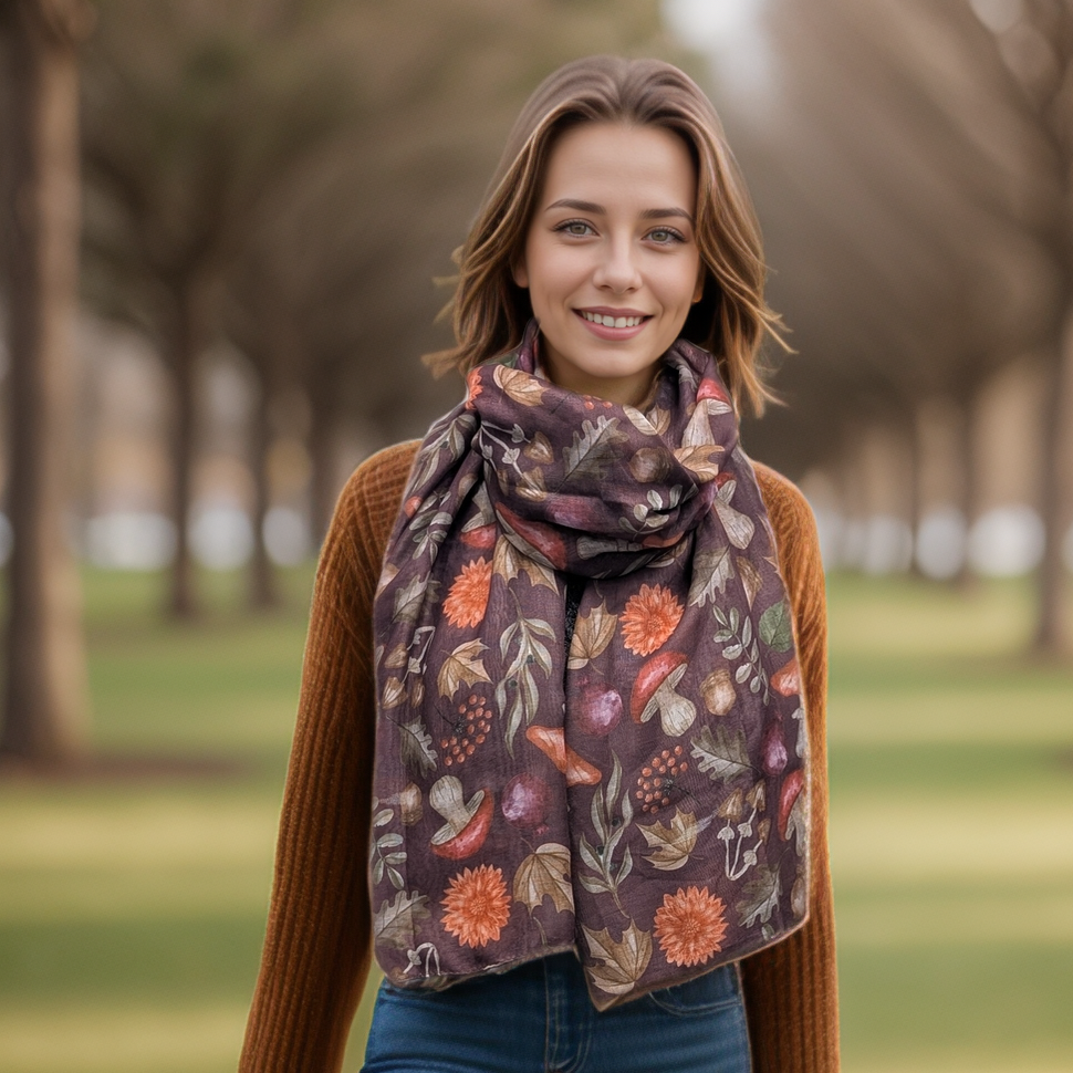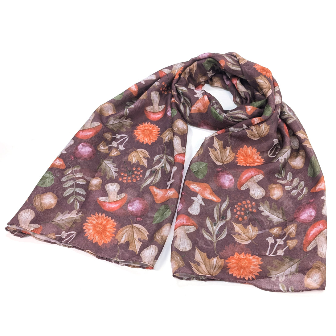 Aubergine Mushroom Scarf | Woodland Autumn Print