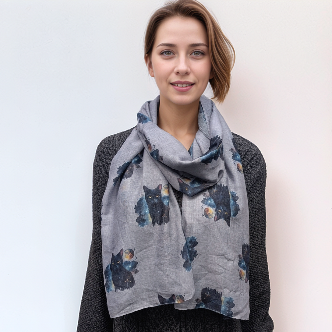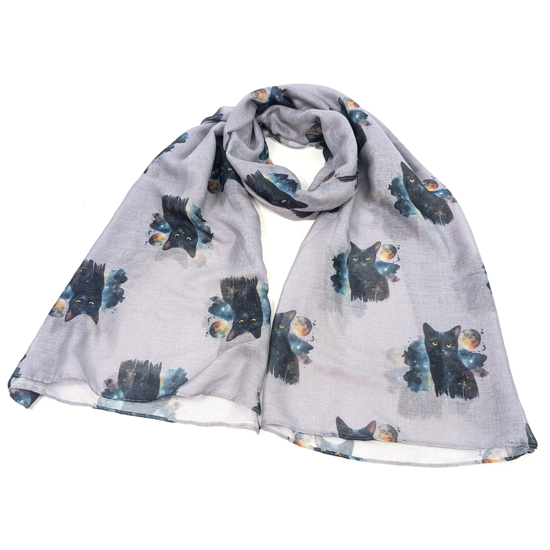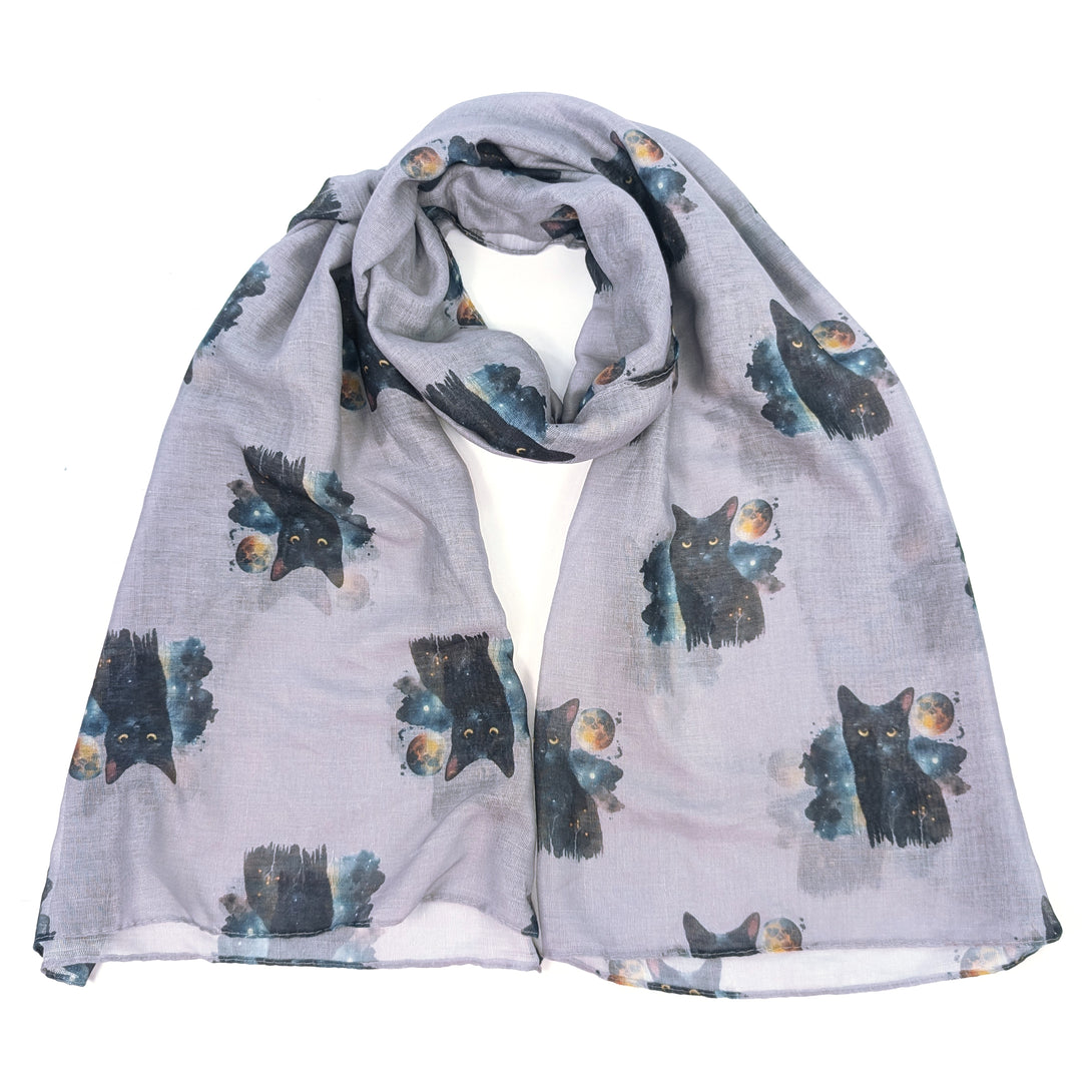 Black Cat & Moon Scarf - Grey | Exclusive Design