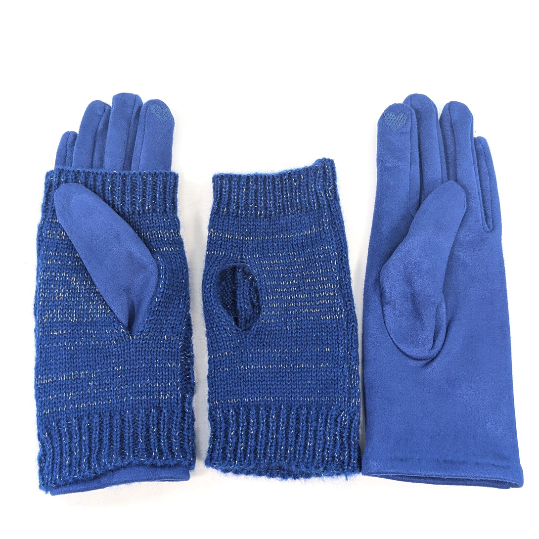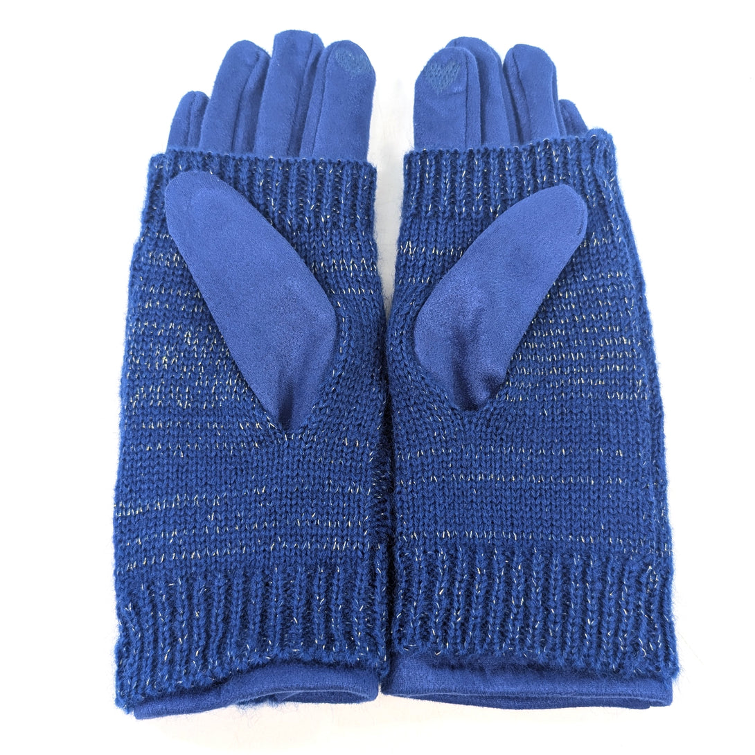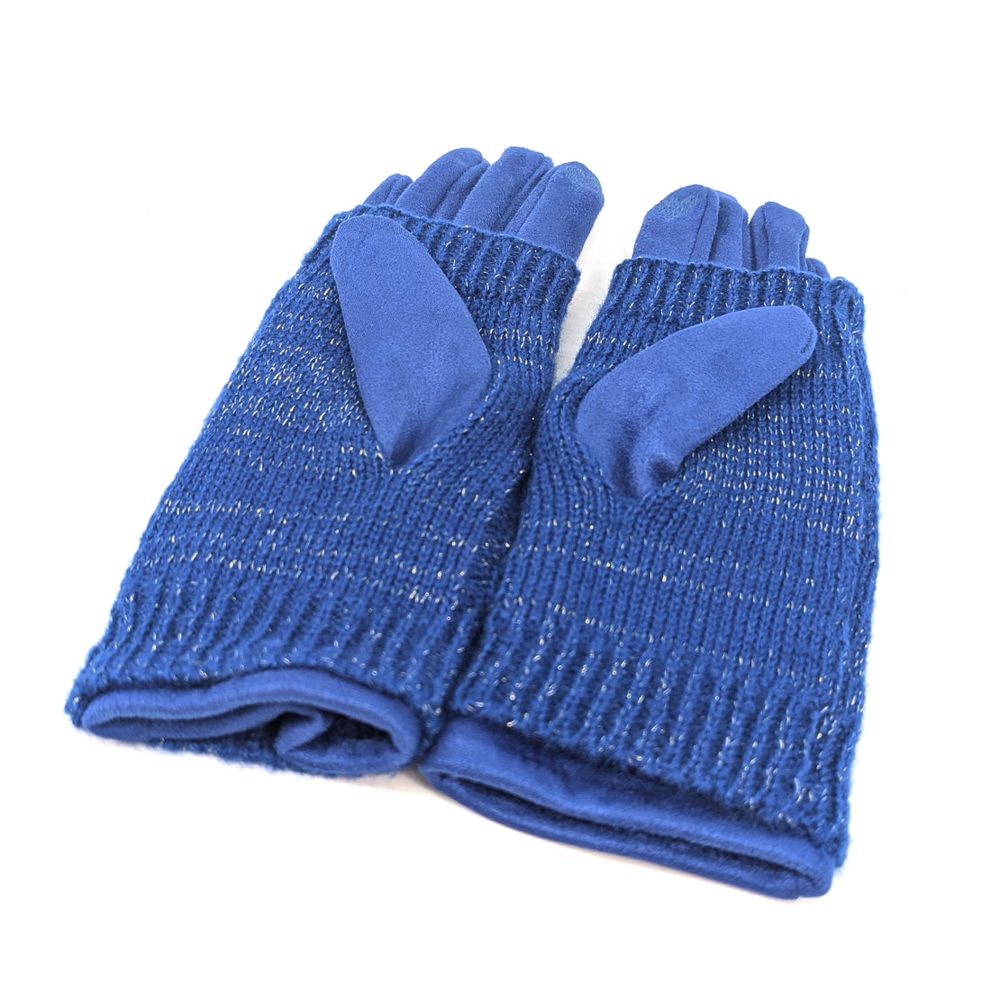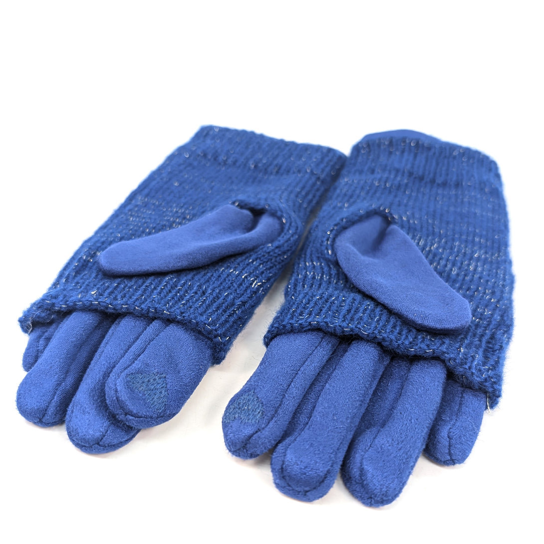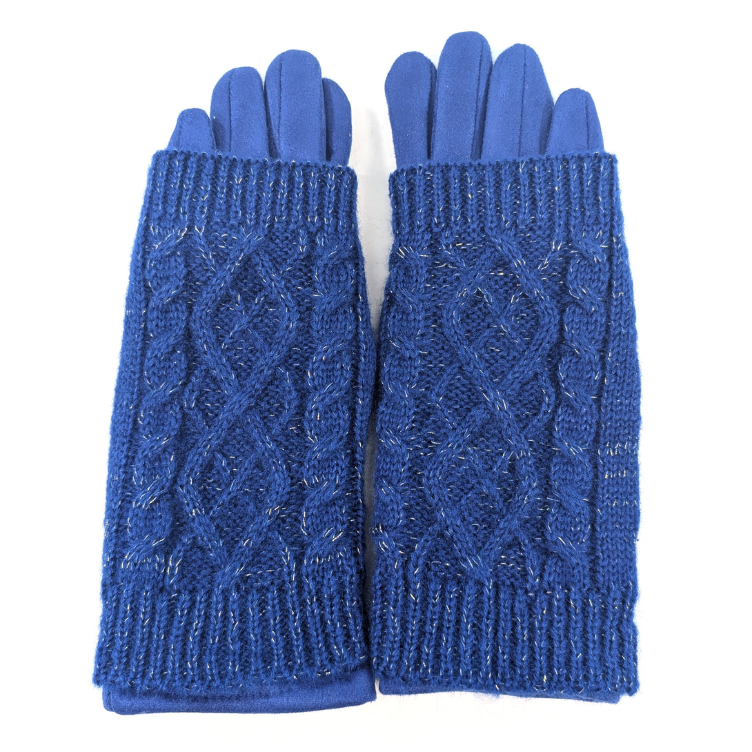 Cable Knit Two in One Sparkle Gloves - Royal Blue
