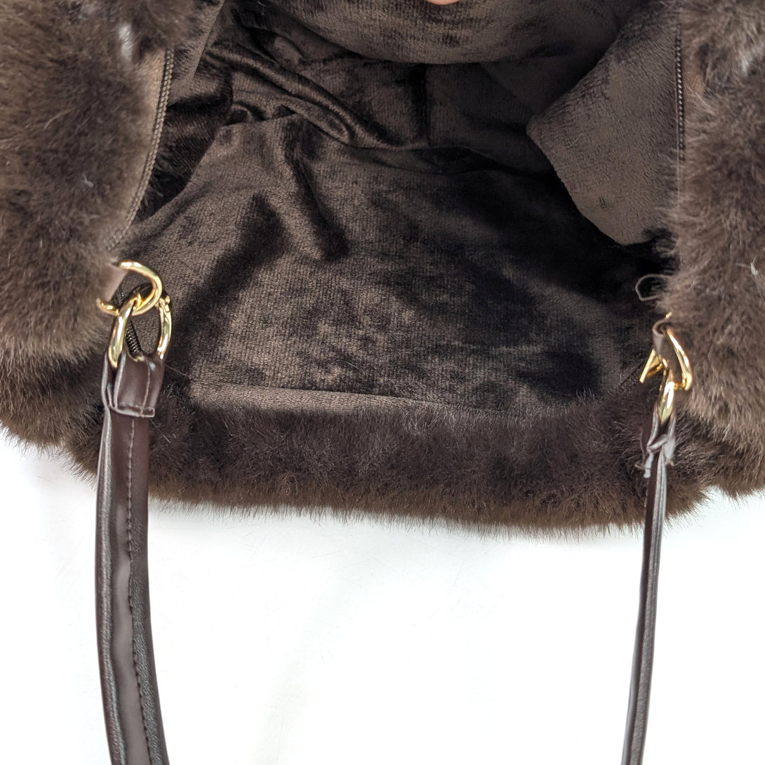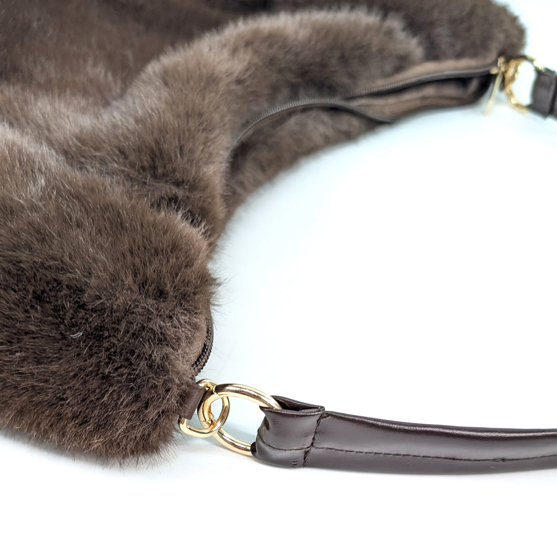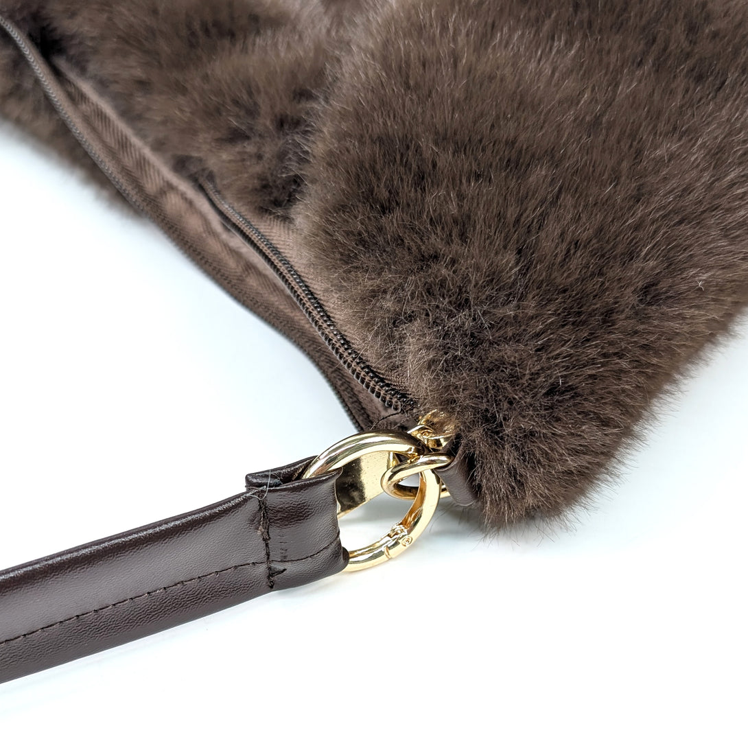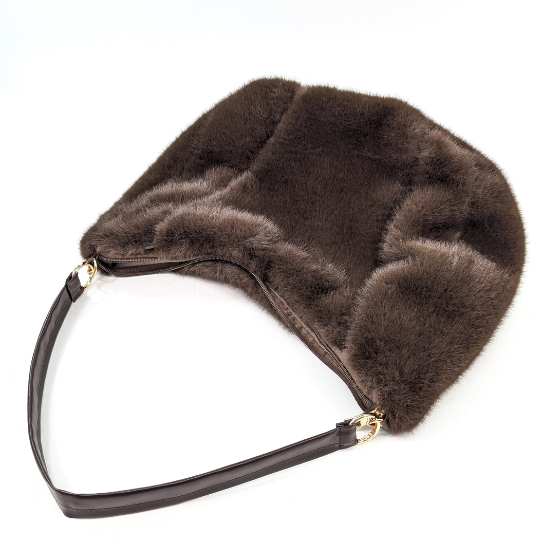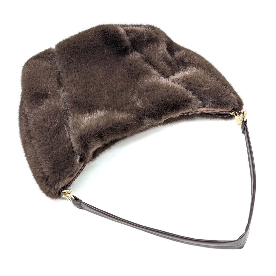 Cora - Faux Fur Shoulder Bag - Dark Brown