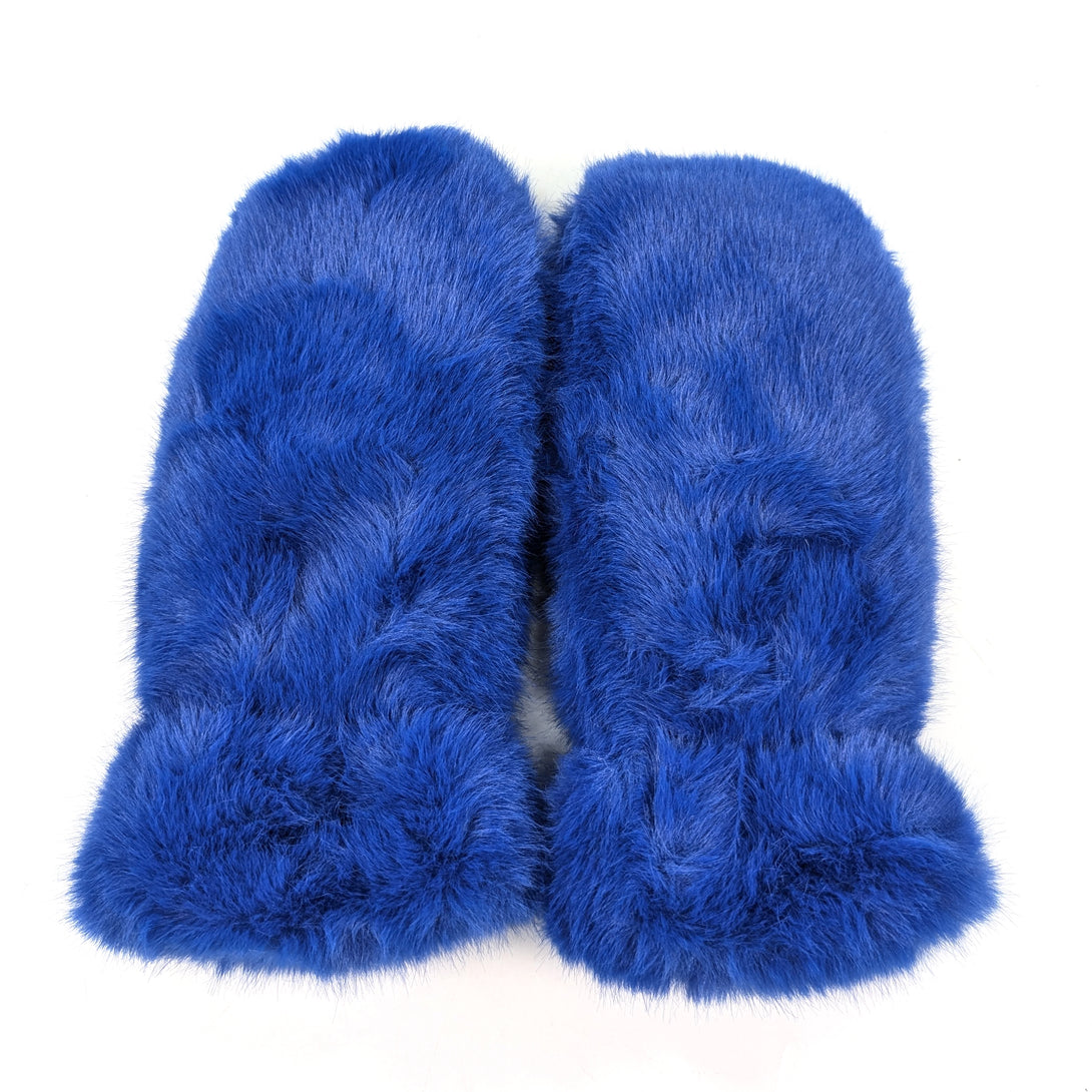 Faux Fur Mittens - Denim Blue | Winter Accessories