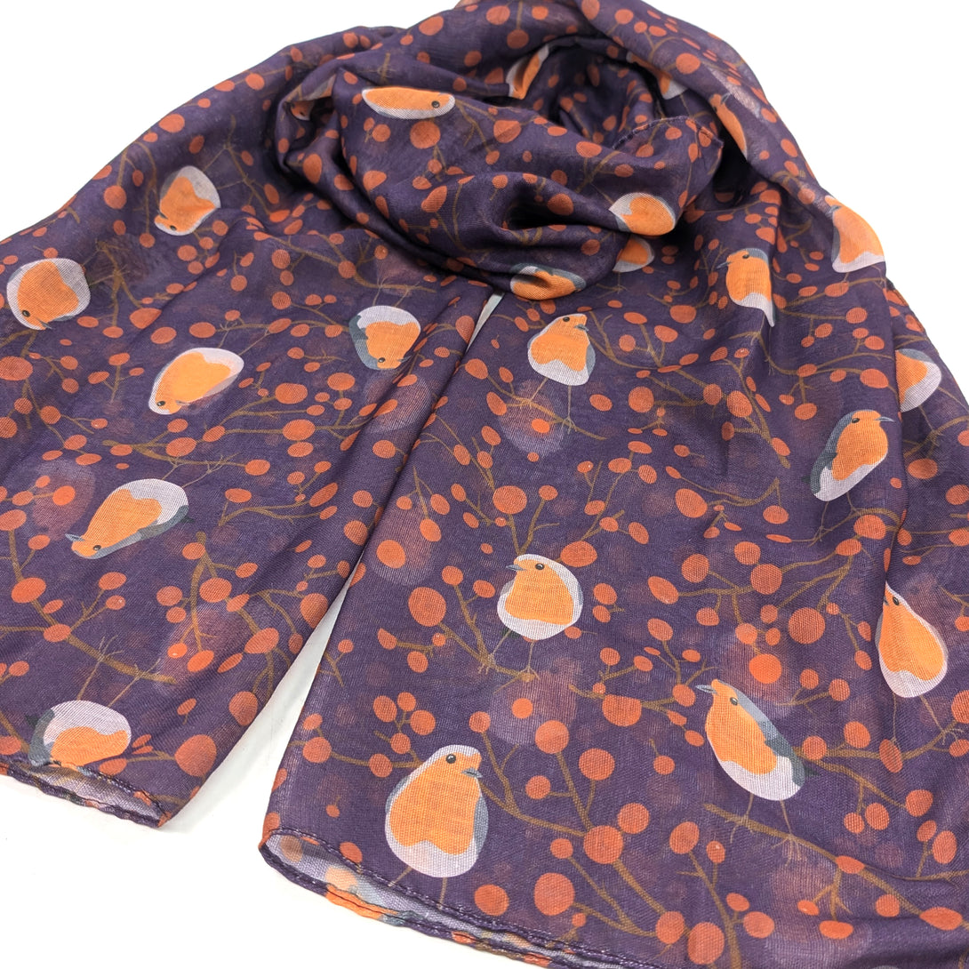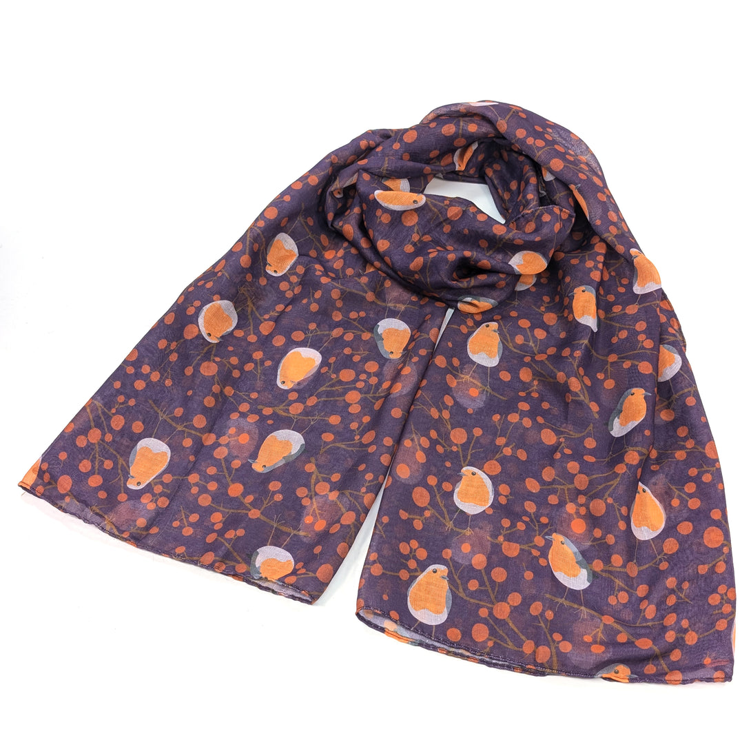 Red Berry Robin Scarf - Purple | Lightweight Scarf