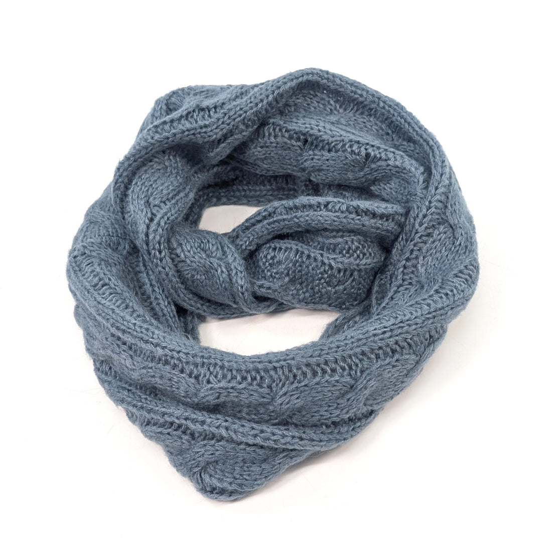 The Selat Snood - Denim Blue brings together cosy cable knit texture and an ultra-wearable blue tone. Easy to throw on and style your way, it's a must-have for effortless winter layering.