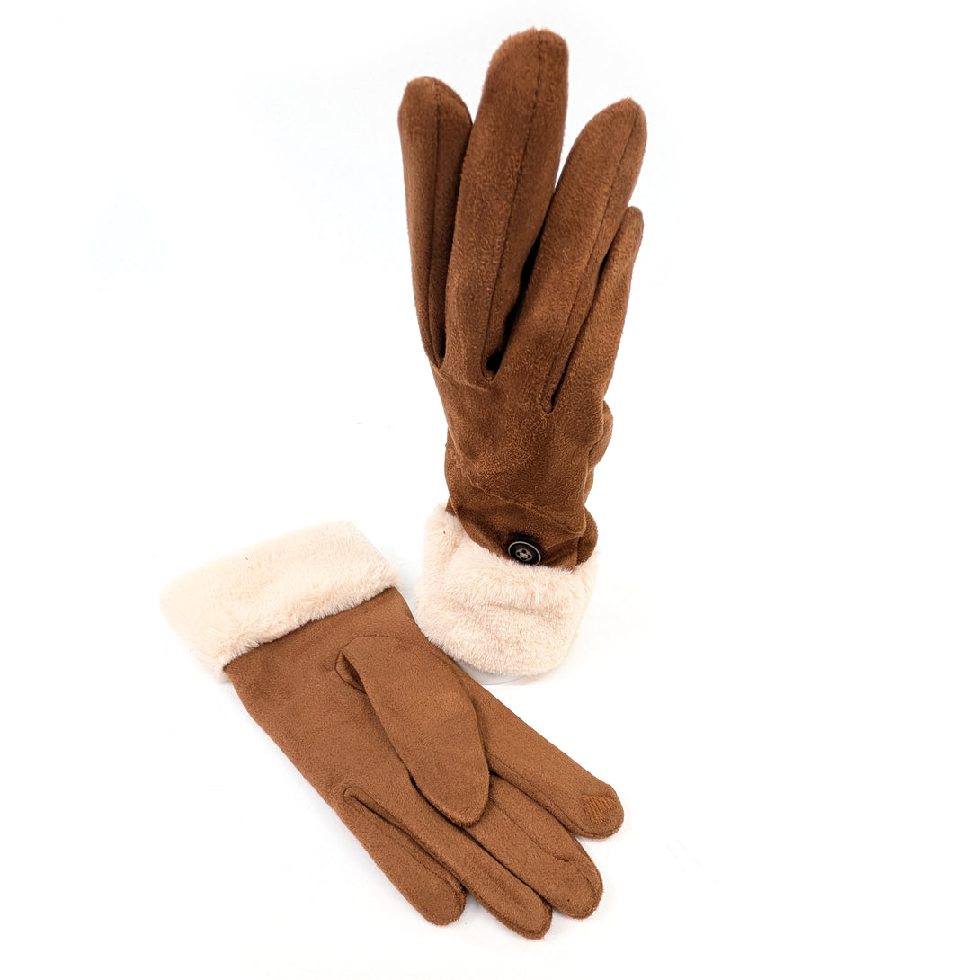 Sheepskin Style Gloves with Faux Fur Trim - Tan