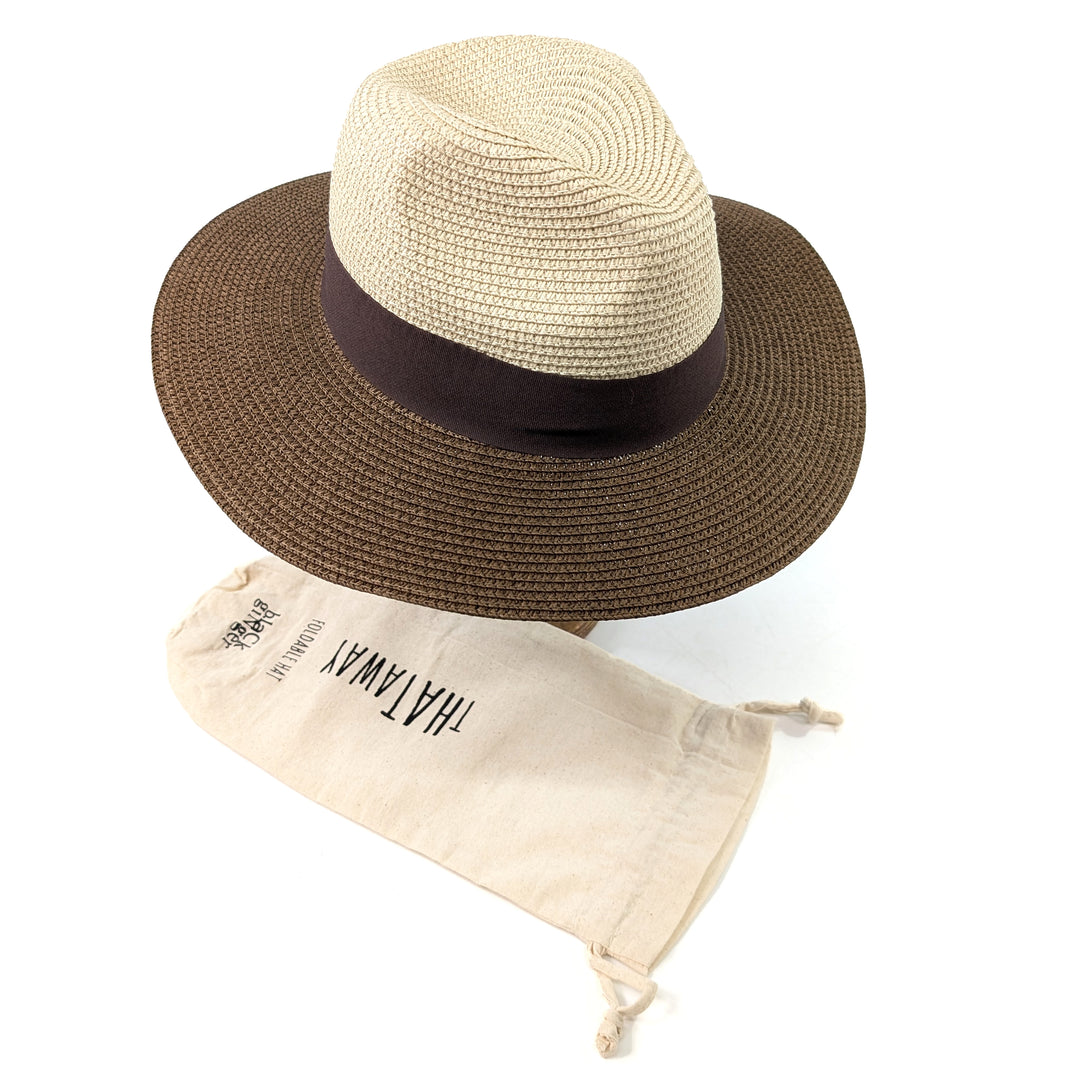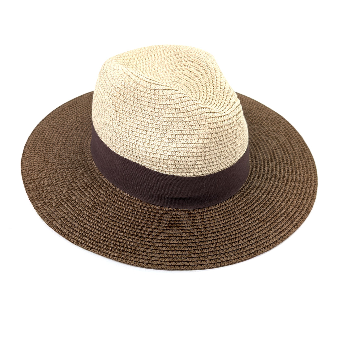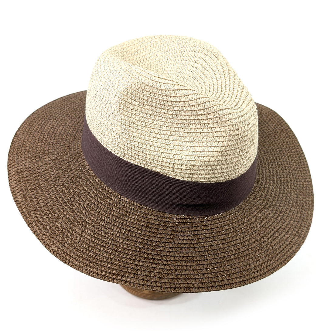Two Tone Panama Foldable Hat (57cm) - Chocolate Brown